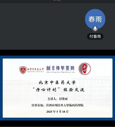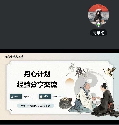 为帮助2025届硕士研究生进一步了解丹心计划的政策与工作内容,针灸推拿学院于2025年5月18日19:00举办了一场丹心计划经验交流分享会,邀请3名2024年成功报名参加丹心计划的毕业生进行线上交流与答疑,分别为北京市朝阳区孙河社区卫生服务中心的高辛瑜、北京市通州区梨园镇梨园社区卫生服务中心的周洋宾和滇西应用技术大学傣医药学院的付春雨,会议由就业专员杨云鹏主持。