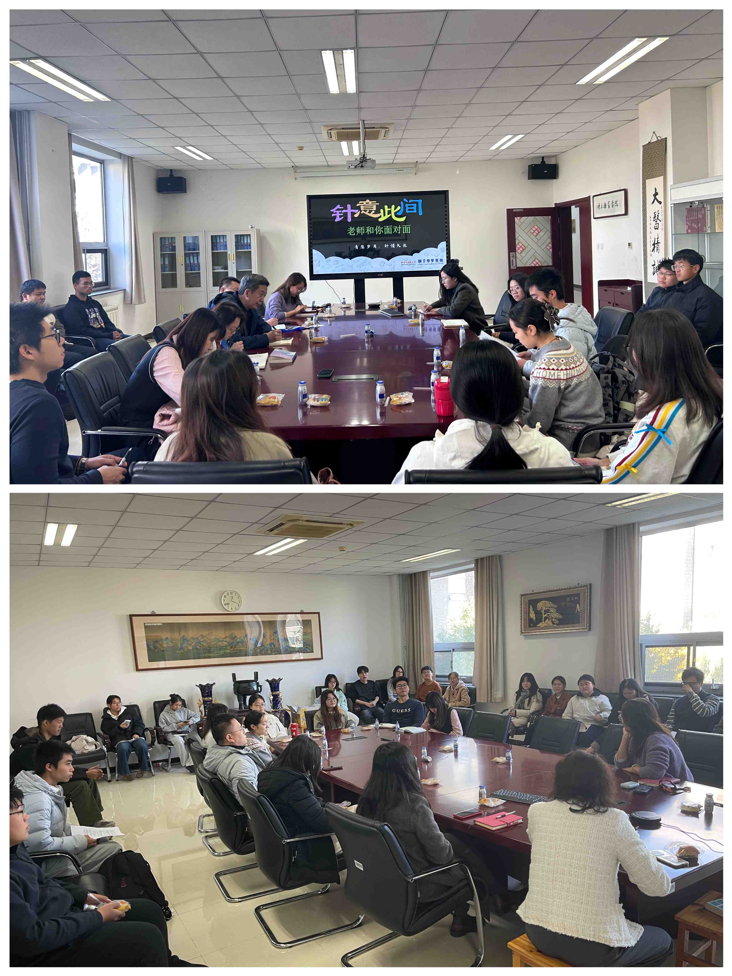 2025年10月27日中午,针灸推拿学院召开了“针家小友”沙龙会,学院高志勇书记、白鹏院长、陈静漪副书记以及教办、学办全体老师和36名“针家小友”们在针推楼325会议室共同参与活动。
